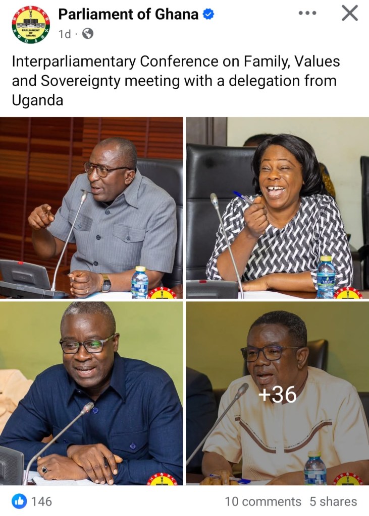 Although details of the meeting were not publicly disclosed in Parliament of Ghana’s post on Facebook, the engagement reflects a growing pattern of legislative alignment between Ghana and Uganda. Uganda has actively positioned itself as a model following its 2023 Anti-Homosexuality Act, using parliamentary exchanges and conferences to promote policy replication across African legislatures.